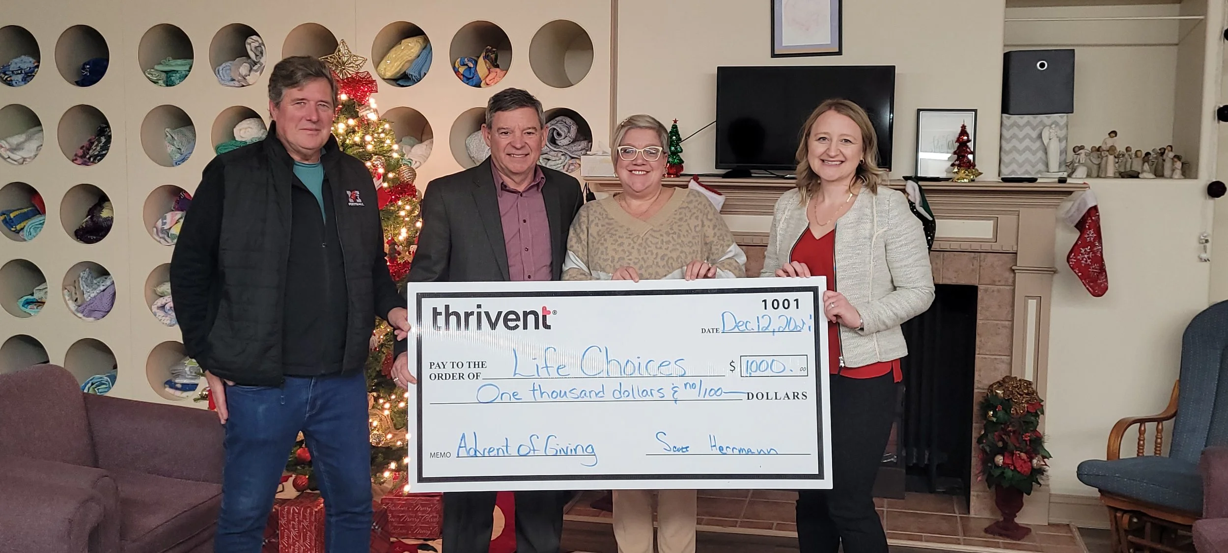 Thank you to Thrivent-Shoreline Group for choosing us as one of their Advent of Giving Charities. We thank them for being a faithful supporter of Life Choices!